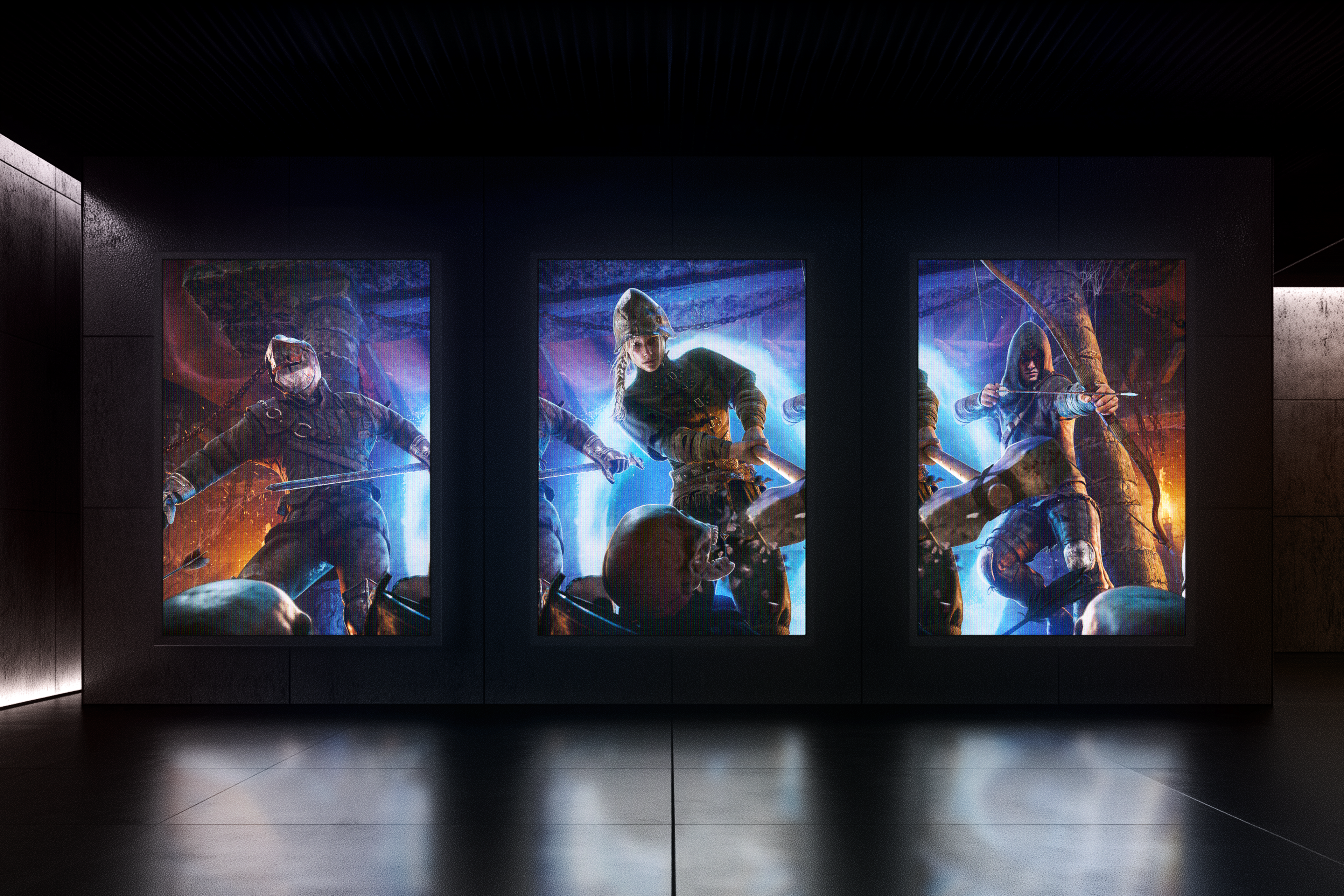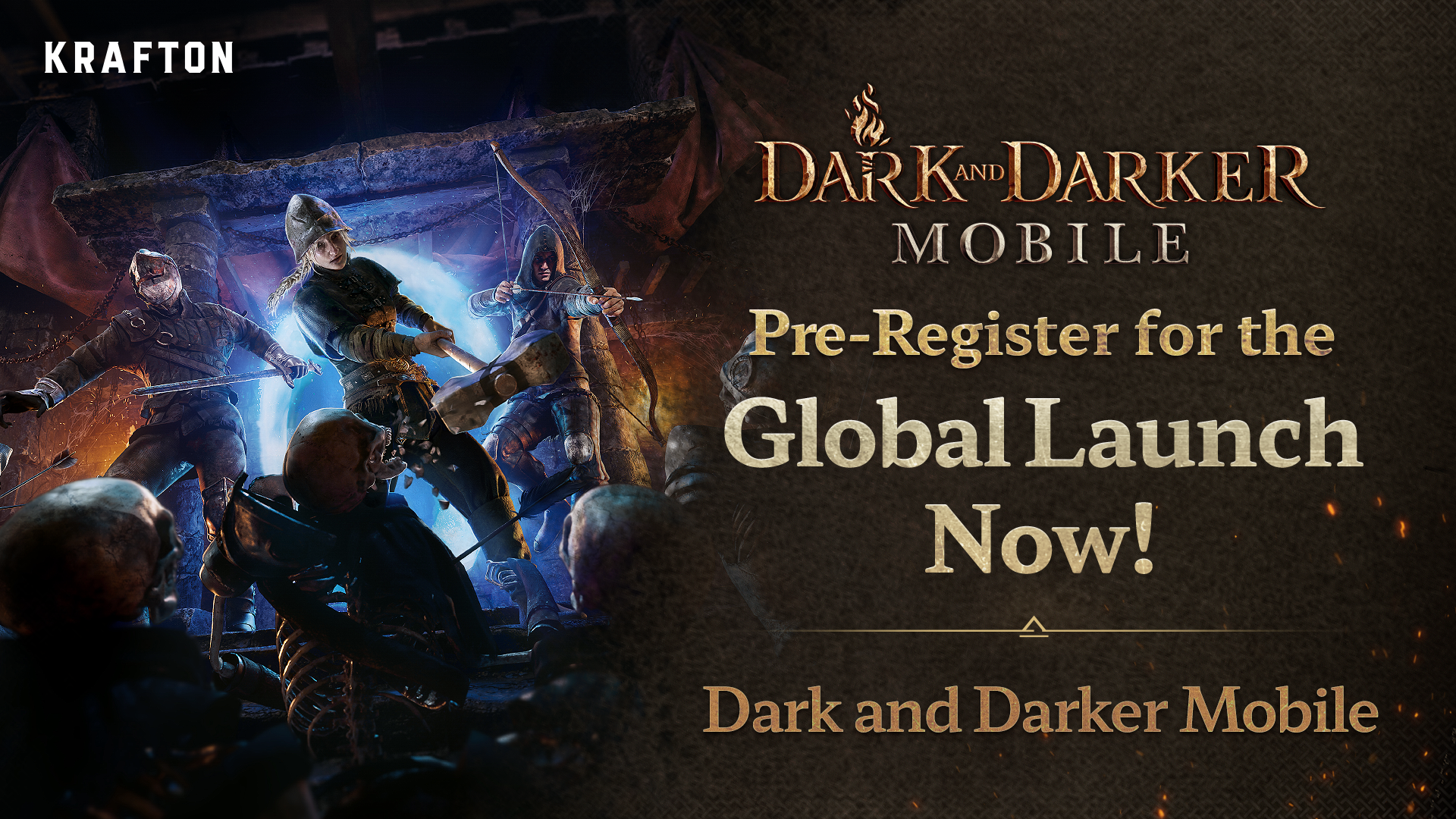 Our team was responsible for creating the key art for Dark and Darker Mobile. The artwork captures the essence of the game by showcasing key elements such as fearsome skeleton monsters, three distinct playable classes, the portal, and the ominous castle ruins—all presented with clarity and impact.